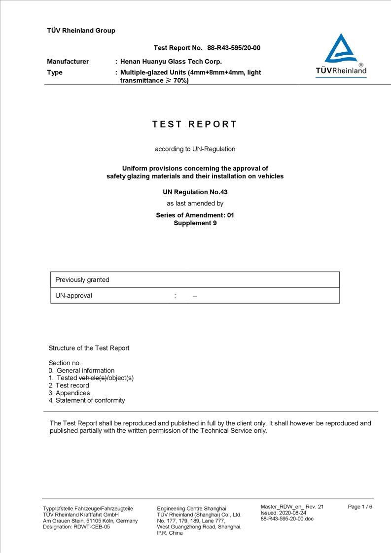 河南環(huán)宇玻璃科技股份有限公司年產(chǎn) 5 萬平方米驗(yàn)收?qǐng)?bào)告公示
